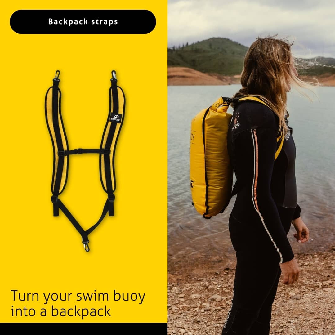 - BACKPACK STRAPS turn the buoy into a comfortable backpack