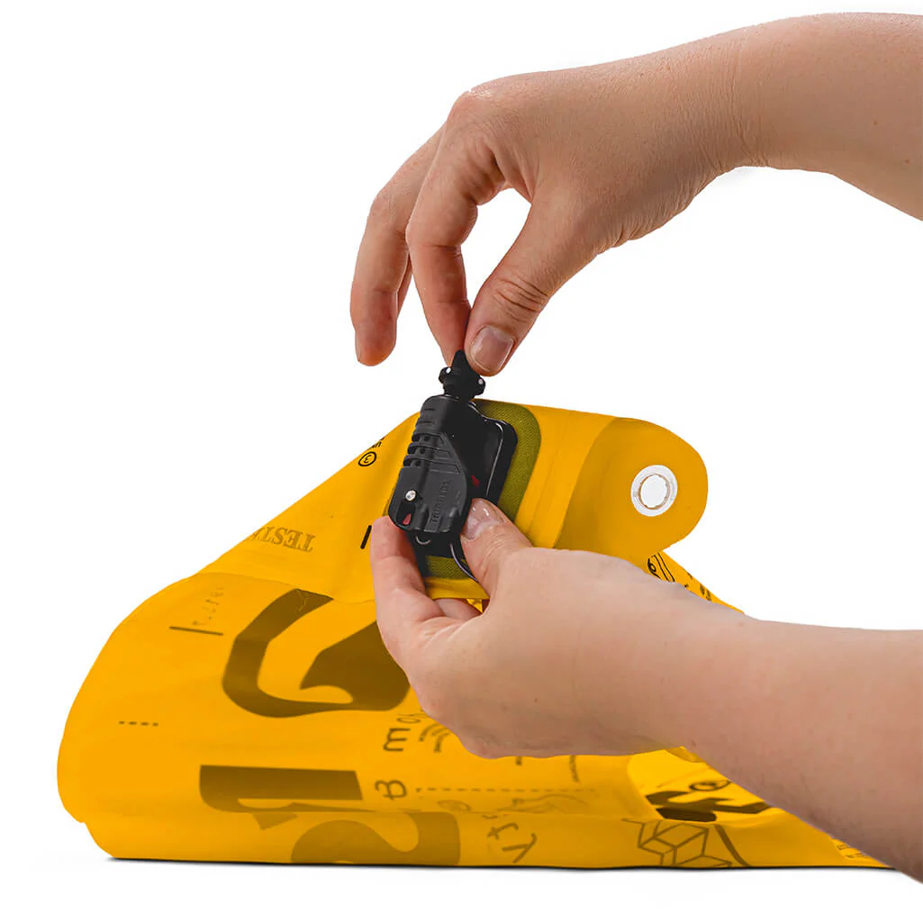 The buoy is simply inflated using the mouth valve before going into the water. This increases your visibility for others on the water - such as paddlers, boats or rescue workers. It also saves the weight of the cartridge.